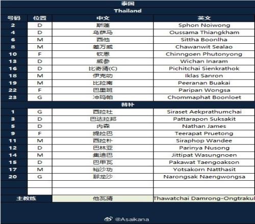 2026亚足联U23亚洲杯泰国vs中国首发名单