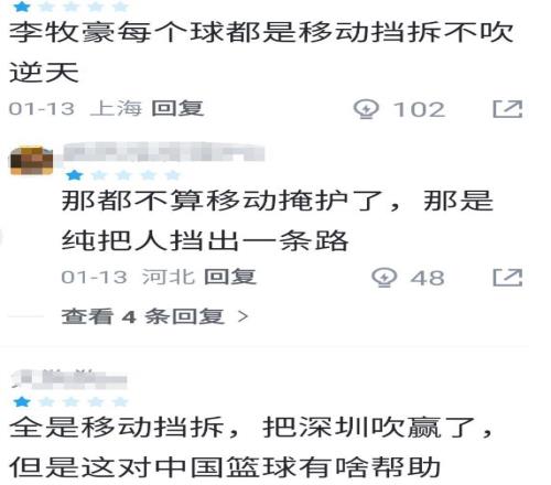 其实上海爆冷输给深圳的那场比赛,上海球迷也是相当不服气的,怨声很大,不少球迷在赛后疯狂指责裁判和李慕豪,认为裁判纵容了李慕豪的多次移动掩护,才导致上海输了比赛,甚至还有球迷说:这场裁判这么吹,美国队来了也只能险胜深圳;国家队有你这挡拆,早就进世界杯了。
