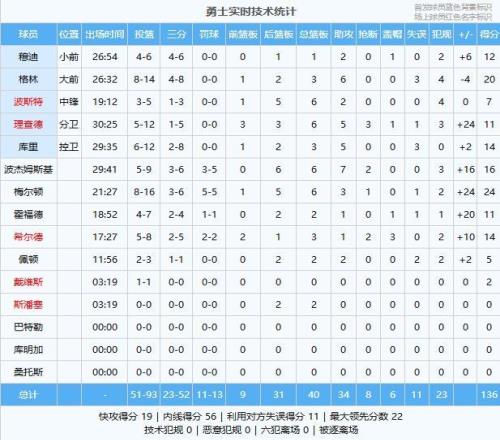 休息归来黄蜂前期抢分一度迫近至3分,但后程勇士回暖迅速扭转战局重新拉开两位数分差,末节勇士牢牢掌控着15分左右的优势没有受到任何威胁。最终,勇士136-116轻取黄蜂收获三连胜。